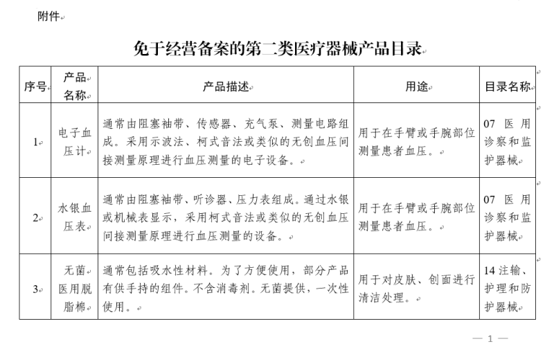 那么,具體哪些產品可以免于經營備案呢?根據《國家藥監(jiān)局關于公布〈免于經營備案的第二類醫(yī)療器械產品目錄〉的公告(2021年第86號)》,電子血壓計、水銀血壓表、無菌醫(yī)用脫脂棉、避孕套等13類第二類醫(yī)療器械產品可免于經營備案,具體明細如下: