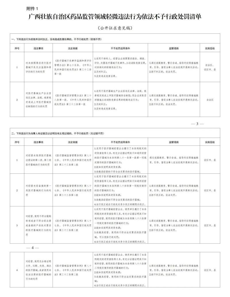 10月8日,廣西藥監(jiān)局官網(wǎng)發(fā)布《廣西壯族自治區(qū)藥品監(jiān)管領(lǐng)域輕微違法行為依法不予行政處罰清單》(以下簡(jiǎn)稱《清單》),并向社會(huì)公開征求意見。