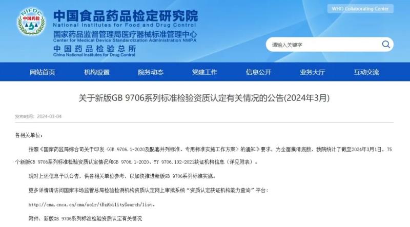 3月4日,中檢院官網(wǎng)公布了截至2024年3月1日,75個(gè)新版GB 9706系列標(biāo)準(zhǔn)檢驗(yàn)資質(zhì)認(rèn)定情況和GB 9706.1-2020、YY 9706.102-2021獲證機(jī)構(gòu)信息。我們從附件表格中可以看到,全國共有108家GB 9706.1-2020資質(zhì)認(rèn)定獲證機(jī)構(gòu),也就是說,可以承擔(dān)新標(biāo)的安規(guī)檢測工作,具體如下: