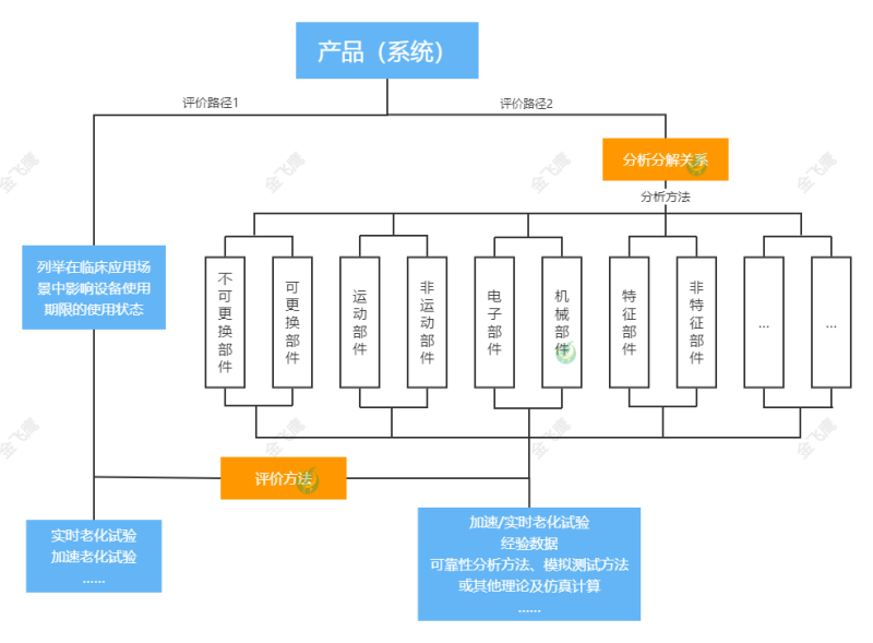 2)通過將產(chǎn)品(系統(tǒng))分解為不同子系統(tǒng)/部件的方式進(jìn)行評(píng)價(jià)。首先應(yīng)詳細(xì)分析分解關(guān)系,在此基礎(chǔ)上通過不同的分解方式(如將產(chǎn)品分為關(guān)鍵部件及非關(guān)鍵部件和/或特征部件及非特征部件和/或可更換部件及不可更換部件和/或運(yùn)動(dòng)部件及非運(yùn)動(dòng)部件和/或電子部件及機(jī)械部件等)確定產(chǎn)品的使用期限。