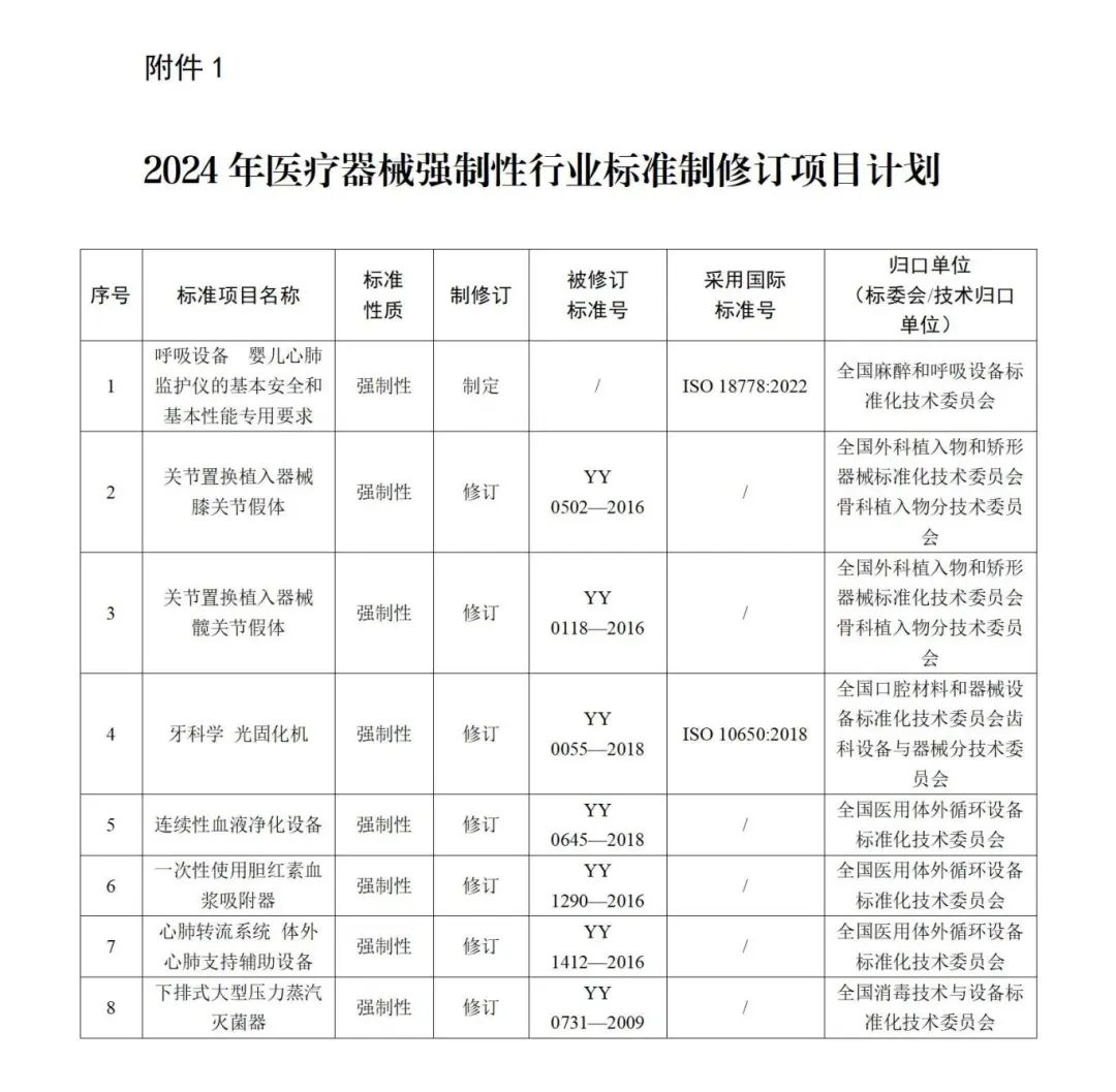 ↑ 2024年醫(yī)療器械強(qiáng)制性行業(yè)標(biāo)準(zhǔn)制修訂項目計劃