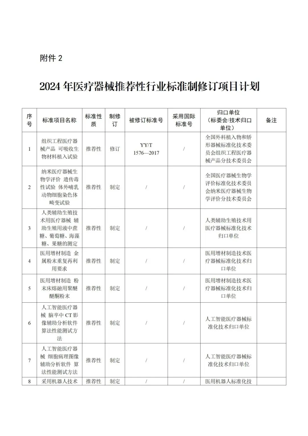 ↑ 2024年醫(yī)療器械推薦性行業(yè)標(biāo)準(zhǔn)制修訂項目計劃