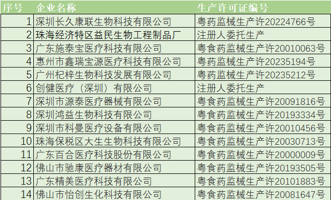 近期,廣東省藥品監(jiān)督管理局組織開展醫(yī)療器械生產企業(yè)監(jiān)督檢查,發(fā)現以下14家企業(yè)質量管理體系存在嚴重缺陷,不符合《醫(yī)療器械生產質量管理規(guī)范》相關規(guī)定,廣東省藥品監(jiān)督管理局已依法采取責令暫停生產的控制措施。