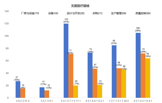 近日,“上海器審”公眾號(hào)公開了上海市2023年度無菌醫(yī)療器械現(xiàn)場(chǎng)檢查問題匯總及分析,其中提到,2023年度,上海市無菌醫(yī)療器械現(xiàn)場(chǎng)核查合計(jì)發(fā)現(xiàn)缺陷1666項(xiàng)。其中廠房與設(shè)施(178項(xiàng)次)、設(shè)備(100項(xiàng)次)、設(shè)計(jì)開發(fā)(282項(xiàng)次)、采購(213項(xiàng)次)、生產(chǎn)管理(399項(xiàng)次)、質(zhì)量控制(360項(xiàng)次)占比超九成,本期文章我們將上海器審總結(jié)的這六個(gè)方面的關(guān)鍵風(fēng)險(xiǎn)點(diǎn)及常見核查問題進(jìn)行轉(zhuǎn)載,以供相關(guān)企業(yè)參考。