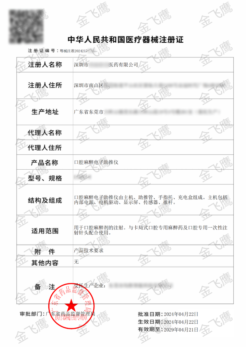 近日,金飛鷹輔導(dǎo)深圳一家企業(yè)成功取得【口腔麻醉電子助推儀】的注冊證,老規(guī)矩,每次案例分享時我們都會附帶一些產(chǎn)品注冊干貨,接下來就跟我們一起了解一下口腔麻醉助推儀注冊的相關(guān)事項(xiàng)吧。