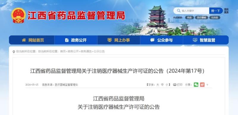 5月15日,江西省藥監(jiān)局官網(wǎng)發(fā)布一則醫(yī)療器械生產(chǎn)許可證注銷公告,公告顯示,該局已依法注銷江西創(chuàng)盈光醫(yī)療科技有限公司、江西省邁樂(lè)醫(yī)療器械有限公司等9家企業(yè)的醫(yī)療器械生產(chǎn)許可證,其中8家為主動(dòng)申請(qǐng)注銷,1家為依法吊銷,具體明細(xì)如下: