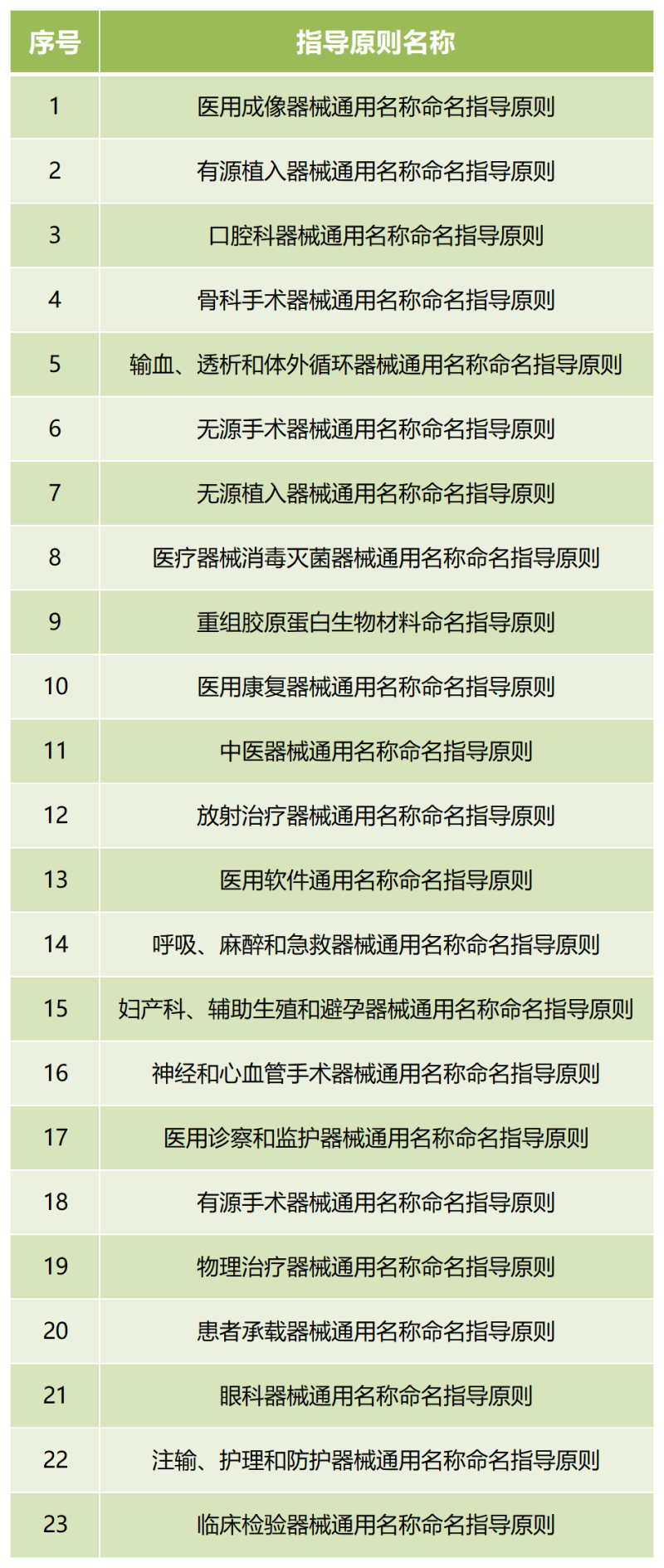 國家藥監(jiān)局在2019年發(fā)布了《醫(yī)療器械通用名稱命名指導(dǎo)原則》,這是制定醫(yī)療器械通用名稱的基本技術(shù)要求,同時(shí)用于指導(dǎo)各專業(yè)領(lǐng)域的命名指導(dǎo)原則編制。而對(duì)于各專業(yè)領(lǐng)域存在的特殊情形,也有相應(yīng)的命名指導(dǎo)原則進(jìn)行具體說明。今天我們就匯總了物理治療器械、醫(yī)用康復(fù)器械、醫(yī)用軟件等23類醫(yī)療器械產(chǎn)品通用名稱命名指導(dǎo)原則,具體如下: