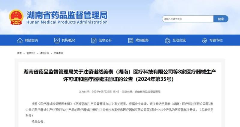 近日,湖南省藥監(jiān)局發(fā)布一則注銷公告,其中提到,按照《醫(yī)療器械監(jiān)督管理條例》《醫(yī)療器械生產(chǎn)監(jiān)督管理辦法》有關規(guī)定,根據(jù)企業(yè)申請,該局已注銷諾然美泰(湖南)醫(yī)療科技有限公司等2家企業(yè)的醫(yī)療器械生產(chǎn)許可證和3個產(chǎn)品的醫(yī)療器械注冊證;注銷長沙市美悅欣醫(yī)療器械有限公司等6家企業(yè)12個產(chǎn)品的醫(yī)療器械注冊證。我們通過查看附件發(fā)現(xiàn),本次注銷的產(chǎn)品中有多款重組膠原蛋白產(chǎn)品,比如重組膠原蛋白溶液、重組膠原蛋白凝膠、重組膠原蛋白液體敷料等,具體明細如下: