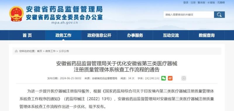 6月25日,安徽省藥監(jiān)局發(fā)布通告稱,根據(jù)《國家藥監(jiān)局綜合司關(guān)于印發(fā)境內(nèi)第三類醫(yī)療器械注冊質(zhì)量管理體系核查工作程序的通知》(藥監(jiān)綜械注〔2022〕13號),該局對安徽省第三類醫(yī)療器械注冊質(zhì)量管理體系核查工作流程作出進一步優(yōu)化。