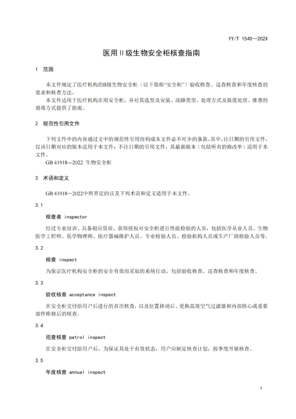 近日,國(guó)家藥監(jiān)局醫(yī)療器械標(biāo)準(zhǔn)管理中心發(fā)布《醫(yī)用Ⅱ級(jí)生物安全柜核查指南》醫(yī)療器械行業(yè)標(biāo)準(zhǔn)的征求意見(jiàn)稿,用以代替YY/T 1540-2017,并向社會(huì)公開(kāi)征求意見(jiàn)。