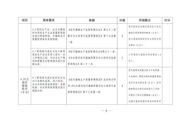 該局提到,《細則》實施后,醫(yī)療器械生產(chǎn)企業(yè)要對照《細則》開展年度自查,并將自查結(jié)果報送至省藥監(jiān)局自查報告系統(tǒng)。監(jiān)管部門要按照風險管理理念,結(jié)合轄區(qū)內(nèi)監(jiān)管實際,依據(jù)《細則》對轄區(qū)內(nèi)醫(yī)療器械生產(chǎn)企業(yè)管理者代表履職能力和履職情況開展抽查,對投訴舉報多、抽檢不合格、不良事件聚集的企業(yè)開展重點檢查。
