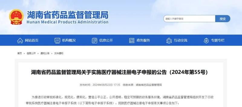 8月22日,湖南藥監(jiān)局發(fā)布《關(guān)于實(shí)施醫(yī)療器械注冊(cè)電子申報(bào)的公告(2024年第55號(hào))》,具體事項(xiàng)如下: