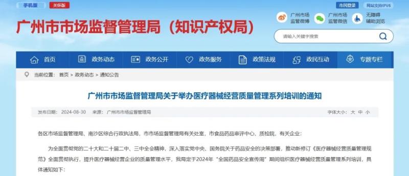 近日,廣州市市場監(jiān)督管理局發(fā)布通知,該局定于9月3日-9月5日舉辦醫(yī)療器械經(jīng)營質(zhì)量管理系列培訓(xùn)(線上直播),具體日程安排及培訓(xùn)內(nèi)容如下: