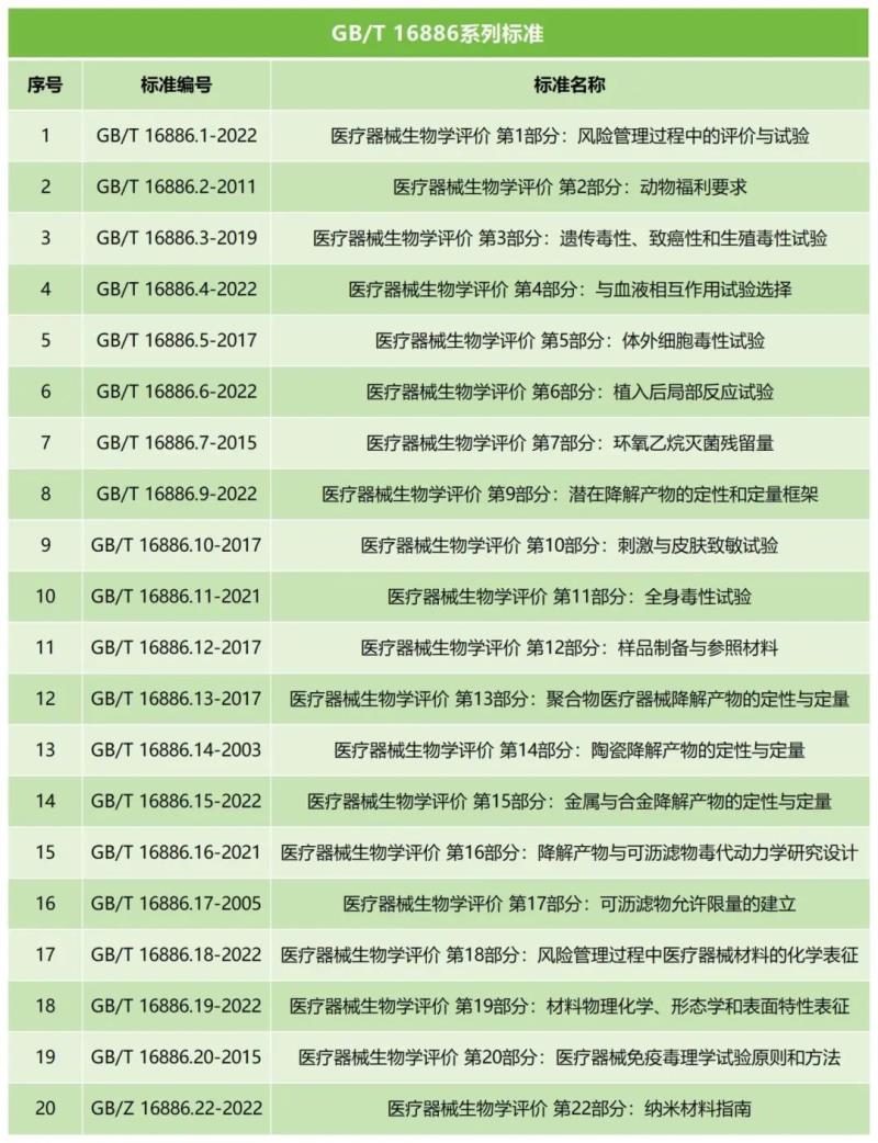 GB/T 16886系列標準規(guī)定了醫(yī)療器械生物學(xué)評價的一般要求和方法,包含風(fēng)險管理過程中的評價與試驗、動物福利要求、遺傳毒性、致癌性和生殖毒性試驗等,適用于廣泛的醫(yī)療器械生物學(xué)評價,旨在保證醫(yī)療器械的安全性和有效性。