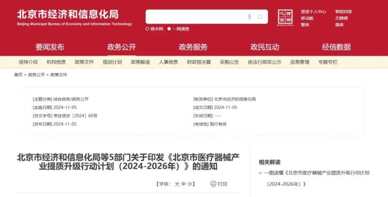 近日,北京市經(jīng)濟(jì)和信息化局、北京市藥品監(jiān)督管理局等5部門聯(lián)合制定了《北京市醫(yī)療器械產(chǎn)業(yè)提質(zhì)升級(jí)行動(dòng)計(jì)劃(2024-2026年)》(以下簡(jiǎn)稱《行動(dòng)計(jì)劃》),并予以發(fā)布。