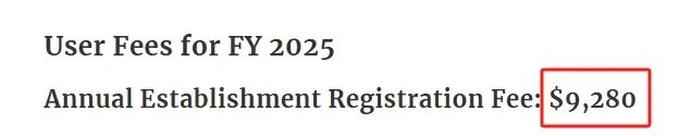 A的年費繳納期限為每年的10月1日到12月31日期間,也就是說2025財年的年費必須在2024年12月31日前完成支付。如果12月31日之前未能按期繳納注冊年費,則下一財年企業(yè)的FDA注冊和認證將失效,其產品無法在美國市場繼續(xù)流通。