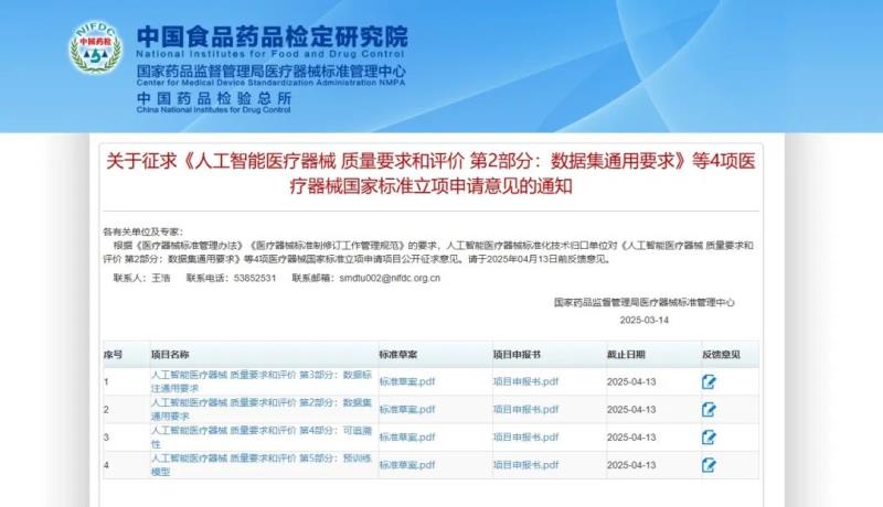 3月14日,國家藥監(jiān)局醫(yī)療器械標(biāo)準(zhǔn)管理中心發(fā)布《人工智能醫(yī)療器械 質(zhì)量要求和評價(jià) 第1部分:術(shù)語》《人工智能醫(yī)療器械 肺部影像輔助分析軟件 算法性能測試方法》2項(xiàng)醫(yī)療器械國家標(biāo)準(zhǔn)的征求意見稿,并向社會公開征求意見。