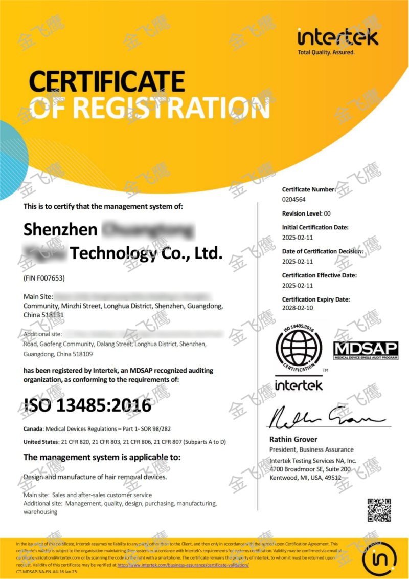 近日,金飛鷹成功輔導(dǎo)深圳一企業(yè)完成脫毛儀產(chǎn)品的MDSAP認(rèn)證(該企業(yè)本次認(rèn)證主要針對(duì)美國(guó)和加拿大兩個(gè)市場(chǎng)),標(biāo)志著該企業(yè)的質(zhì)量管理體系已符合國(guó)際最高標(biāo)準(zhǔn),為其全球化布局奠定堅(jiān)實(shí)基礎(chǔ)!