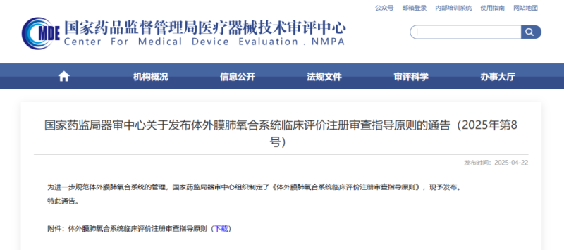 4月22日,國家藥監(jiān)局器審中心發(fā)布《體外膜肺氧合系統(tǒng)臨床評價注冊審查指導原則》(以下簡稱《指導原則》),其中提到,體外膜肺氧合醫(yī)療器械產品分為體外膜肺氧合設備和體外膜肺氧合器具,可通過同品種臨床評價路徑開展臨床評價,即基于與已上市產品的全面對比,以及科學設計的、高質量的、可靠的臺架試驗、動物試驗,和/或一定樣本量的臨床試驗開展臨床評價。