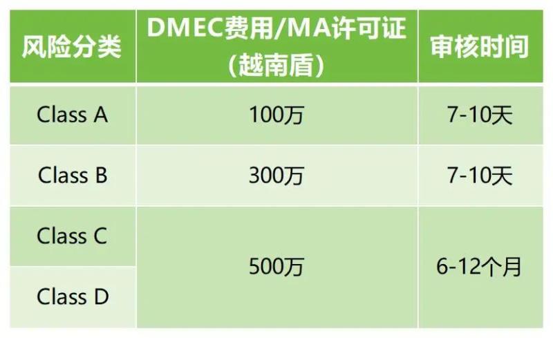 C類和D類器械在越南進(jìn)口和銷售之前需要獲得市場(chǎng)授權(quán)(MA)許可證;當(dāng)?shù)厥跈?quán)代表需要提交上市注冊(cè)文檔Marketing Authorization Registration到衛(wèi)生部DMEC,審核和批準(zhǔn)后獲得永久有效的《流通注冊(cè)證》(產(chǎn)品許可證)。大致費(fèi)用及周期如下:
