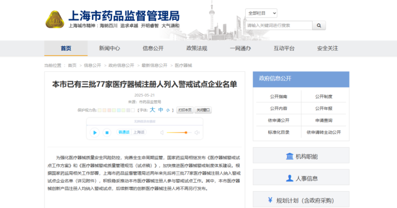 5月21日,上海市藥監(jiān)局發(fā)布該市醫(yī)療器械注冊人警戒試點企業(yè)名單,其中提到,該局近兩年來先后將三批77家醫(yī)療器械注冊人納入警戒試點企業(yè)名單(具體見下圖),積極穩(wěn)妥推動上海市醫(yī)療器械注冊人參與警戒試點工作。其中,上海市醫(yī)療器械創(chuàng)新產(chǎn)品注冊人均納入警戒試點,后續(xù)新增的創(chuàng)新醫(yī)療器械注冊人將不再另行發(fā)布。