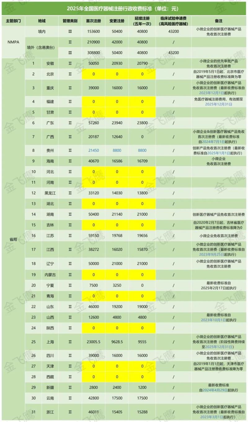 最后依然附上2025最新版【全國各?。ㄊ校┽t(yī)療器械注冊行政收費標準】(根據各省政務服務網辦事指南及各藥監(jiān)局最新公開的收費標準綜合整理,若有疏漏,歡迎各地朋友指正),具體見下圖,大家記得收藏備用哦!