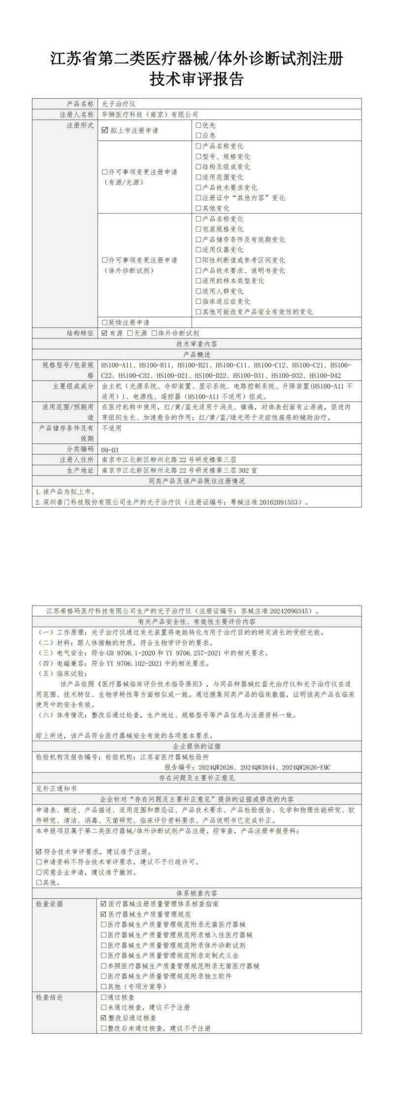7月12日,江蘇省藥監(jiān)局公布了2025年6月批準(zhǔn)注冊的重組膠原蛋白噴劑敷料、明火艾灸儀、立體動態(tài)干擾電治療儀、定制式增材制造截骨導(dǎo)板、穿戴式動態(tài)心電記錄儀、運動氣壓治療系統(tǒng)、眼底照相機、掌上超聲波電刺激治療儀、光子治療儀、磁振熱治療儀等151個醫(yī)療器械產(chǎn)品目錄,同時隨附了所有產(chǎn)品的技術(shù)審評報告,我們其中“光子治療儀”(預(yù)期用途:在醫(yī)療機構(gòu)中使用,紅/黃/藍(lán)光適用于消炎、鎮(zhèn)痛,對體表創(chuàng)面有止?jié)B液,促進肉芽組織生長、加速愈合的作用;紅/黃/藍(lán)/綠光用于炎癥性痤瘡的輔助治療)的技術(shù)審評報告以圖片形式轉(zhuǎn)載如下: