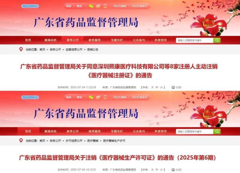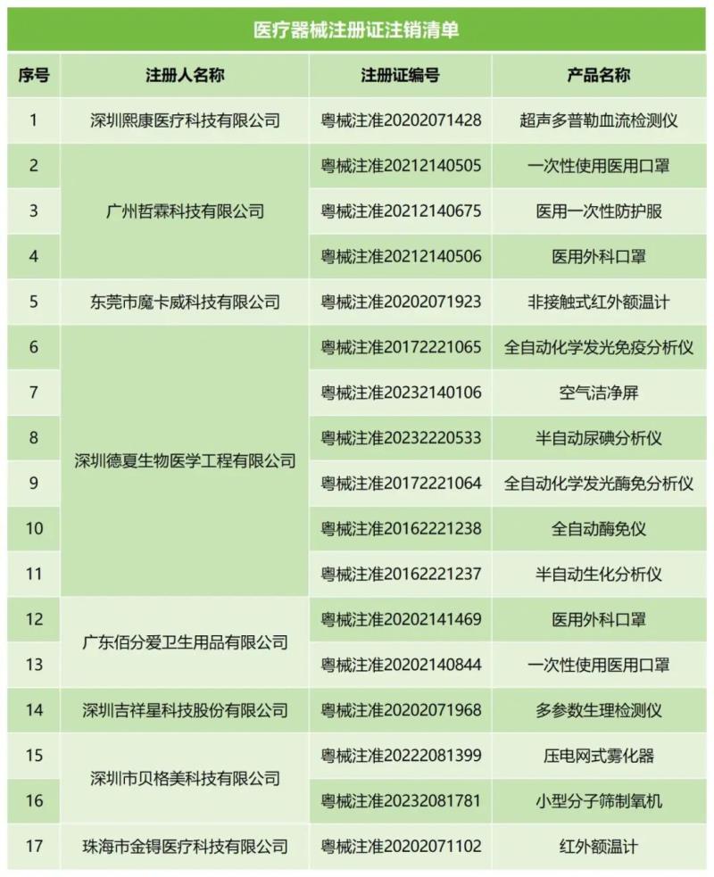 近日,廣東省藥監(jiān)局發(fā)布兩則注銷通告,通告顯示,根據(jù)企業(yè)申請,該局已注銷深圳熙康醫(yī)療科技有限公司、深圳德夏生物醫(yī)學(xué)工程有限公司等8家注冊人持有的17張《醫(yī)療器械注冊證》,同時注銷了廣東佰分愛衛(wèi)生用品有限公司、深圳吉祥星科技股份有限公司等9家企業(yè)的《醫(yī)療器械生產(chǎn)許可證》,具體明細(xì)如下: