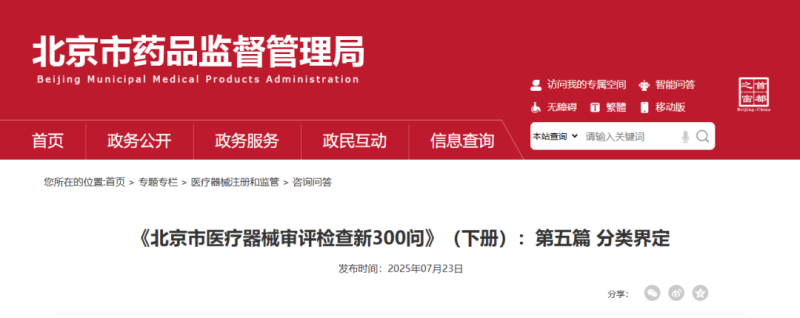 自今年6月以來,北京市醫(yī)療器械審評檢查中心持續(xù)推出了《北京市醫(yī)療器械審評檢查新300問》(下冊),此前我們已轉(zhuǎn)載了有源產(chǎn)品、質(zhì)量管理體系、創(chuàng)新醫(yī)療器械的相關(guān)內(nèi)容,本期文章我們繼續(xù)轉(zhuǎn)載有關(guān)“分類界定”的6個咨詢問答,大家別忘收藏備用哦
