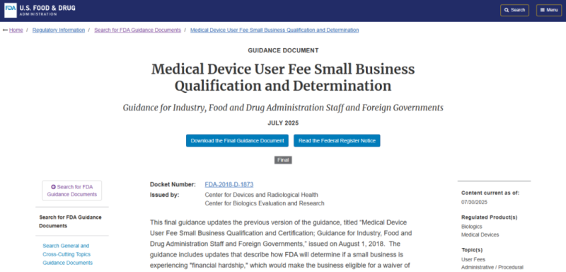 近日,F(xiàn)DA更新了有關(guān)小企業(yè)資質(zhì)申請(qǐng)的指南文件Medical Device User Fee Small Business Qualification and Determination,在指南中詳細(xì)說(shuō)明了“小企業(yè)注冊(cè)年費(fèi)減免”的條件。