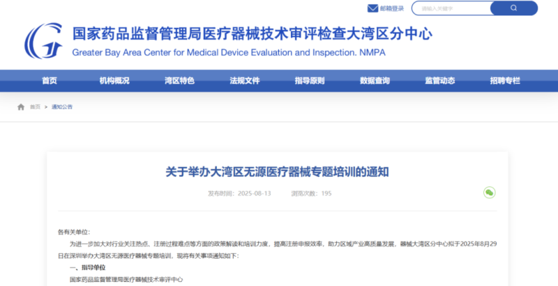 近日,國家藥監(jiān)局醫(yī)療器械技術(shù)審評檢查大灣區(qū)分中心發(fā)布通知,定于8月29日(周五)舉辦“大灣區(qū)無源醫(yī)療器械專題培訓(xùn)”線上主題咨詢開放日活動,具體培訓(xùn)內(nèi)容及報(bào)名方式如下: